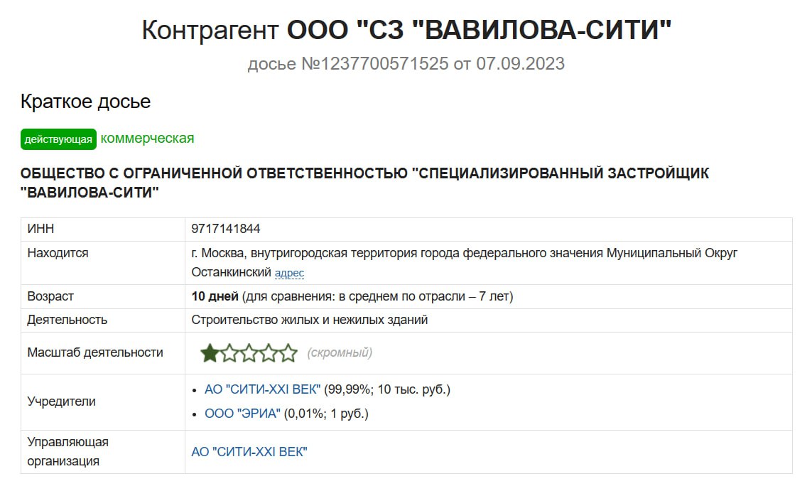 Можно предположить, что застройщиком выступает «Вавилова-Сити», созданный недавно компанией «Сити21»