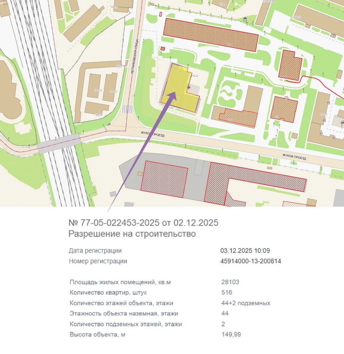 «Аквилон» получил разрешение на строительство на 150-метровой башни по адресу Жуков проезд, 21.