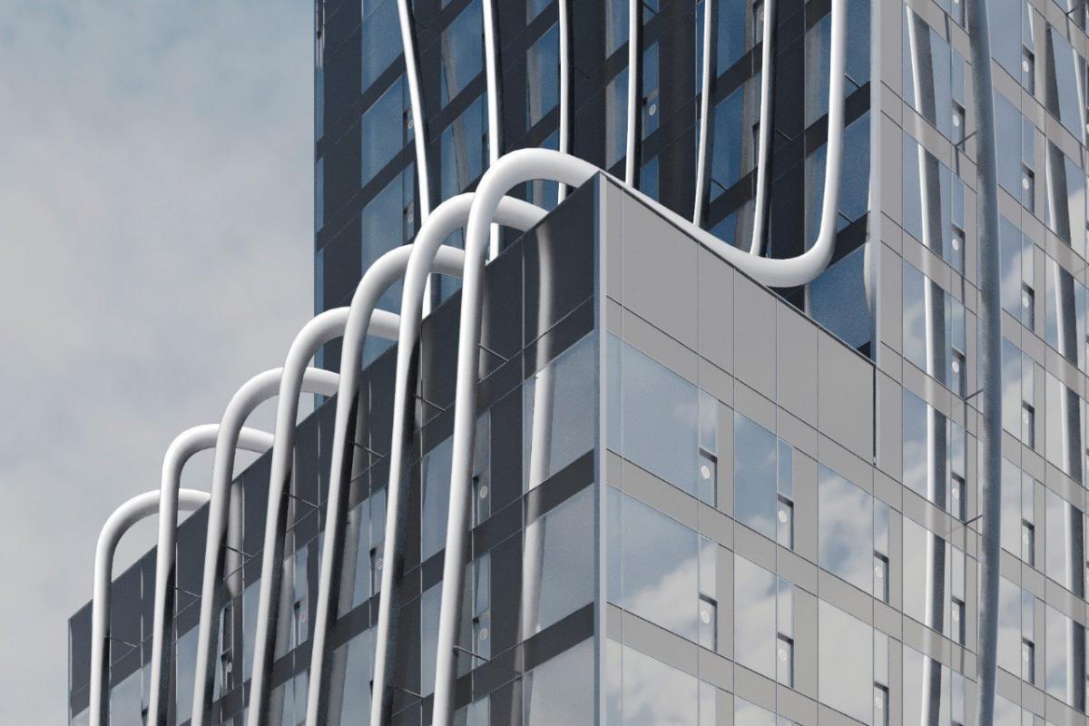 В этой прекрасной локации девелопер запланировал 44-этажный жилой дом на 516 квартир. В стилобате, который займет всего один этаж, будут обустроены общественные помещения, а в трех подземных этажах будут места для паркинга. Высота комплекса - 149,9 метра.