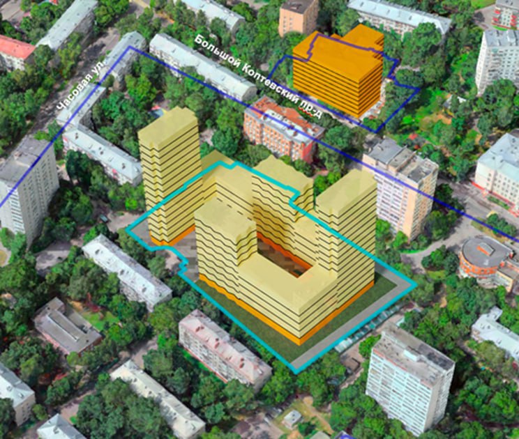 Для площадки появилась посадка-4 корпуса высотой от 10 до 16 этажей, объединенные 5-уровневым стилобатом.