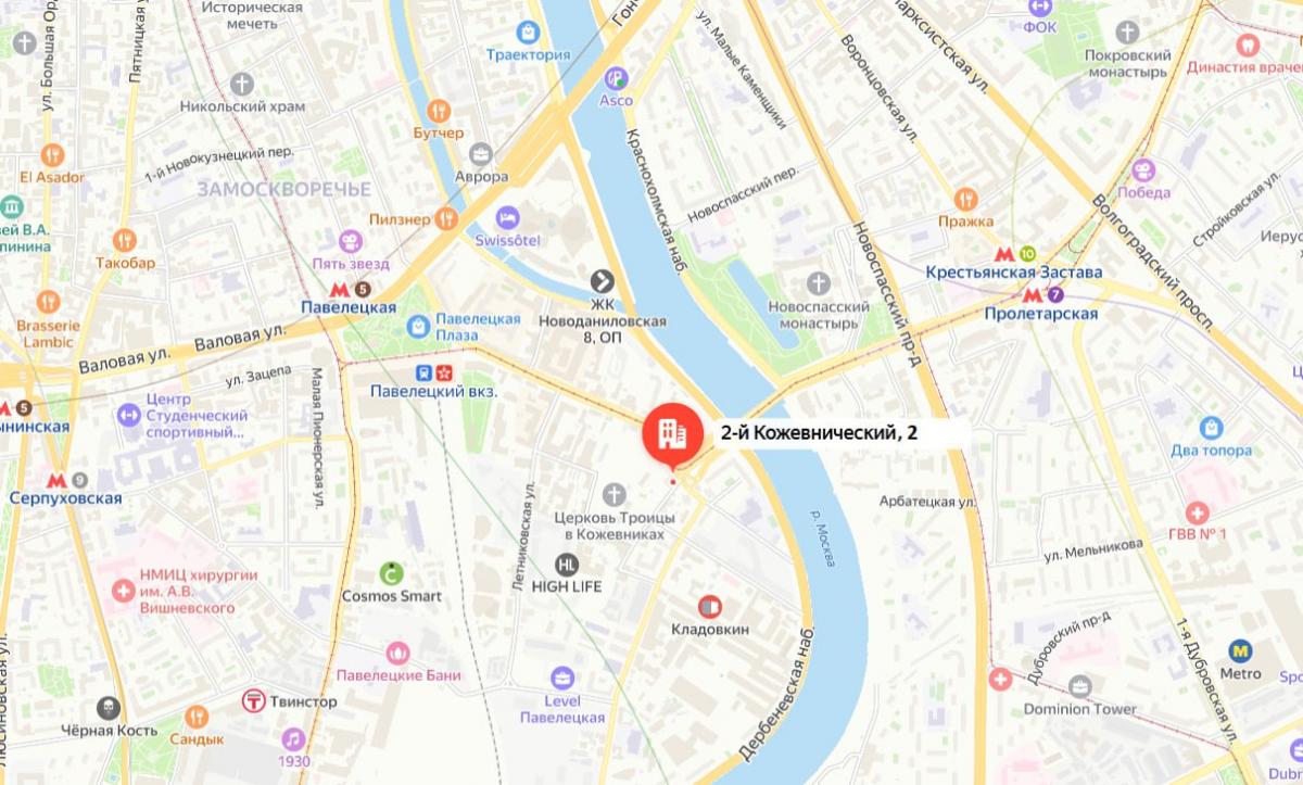 Ближайшая станция метро - «Павелецкая», 10 минут пешком.