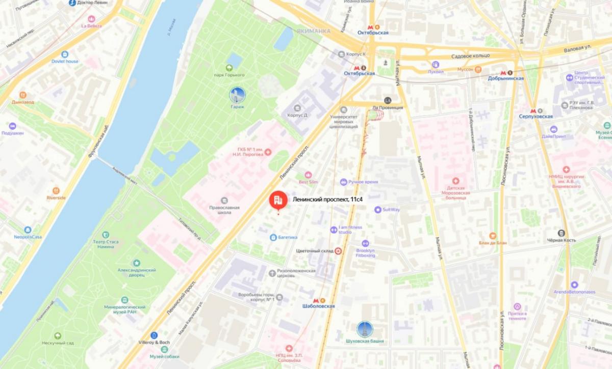 Ближайшая станция метро - «Шаболовская», пять минут пешком