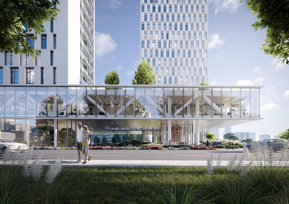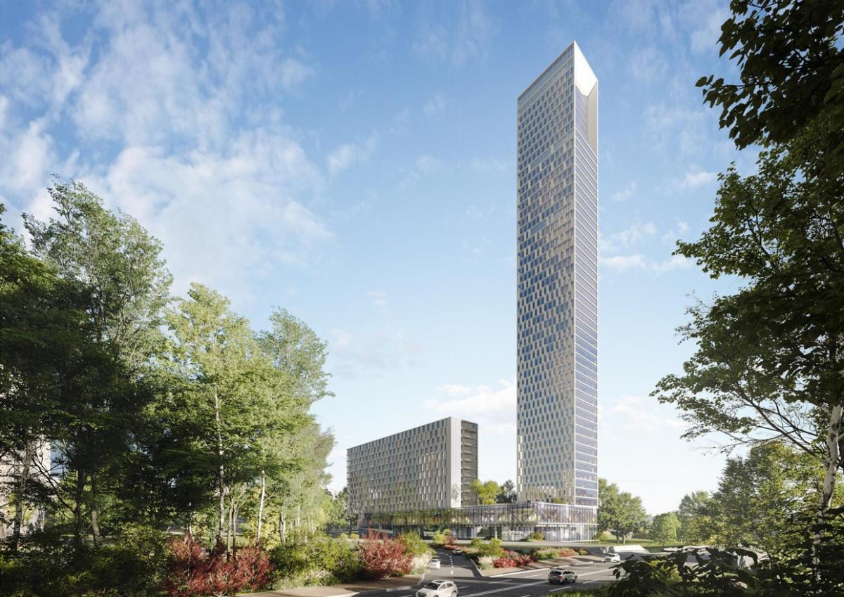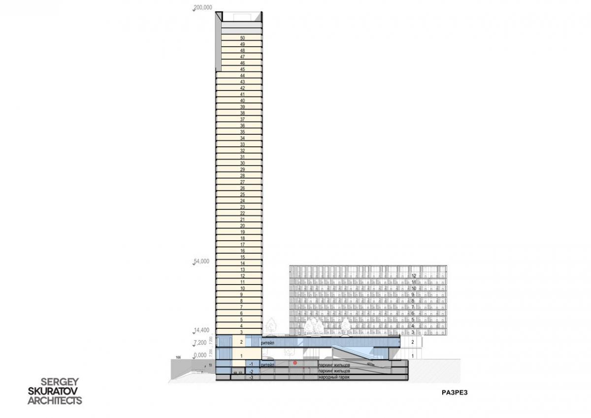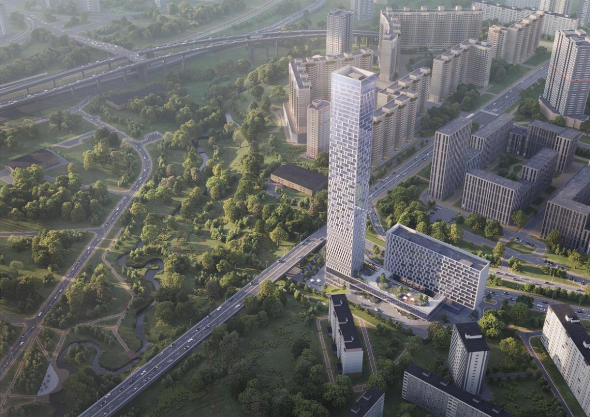 В составе комплекса ожидается два корпуса: 50-этажная высотка и 12-этажный многоподъездный дом. Правда, есть сомнения в том, что проект будет реализован. Впрочем, юридическое лицо, созданное для освоения территории, пока еще живо (в отличие от других компаний «Спелого солнца», зарегистрированных для застройки остальных участков).