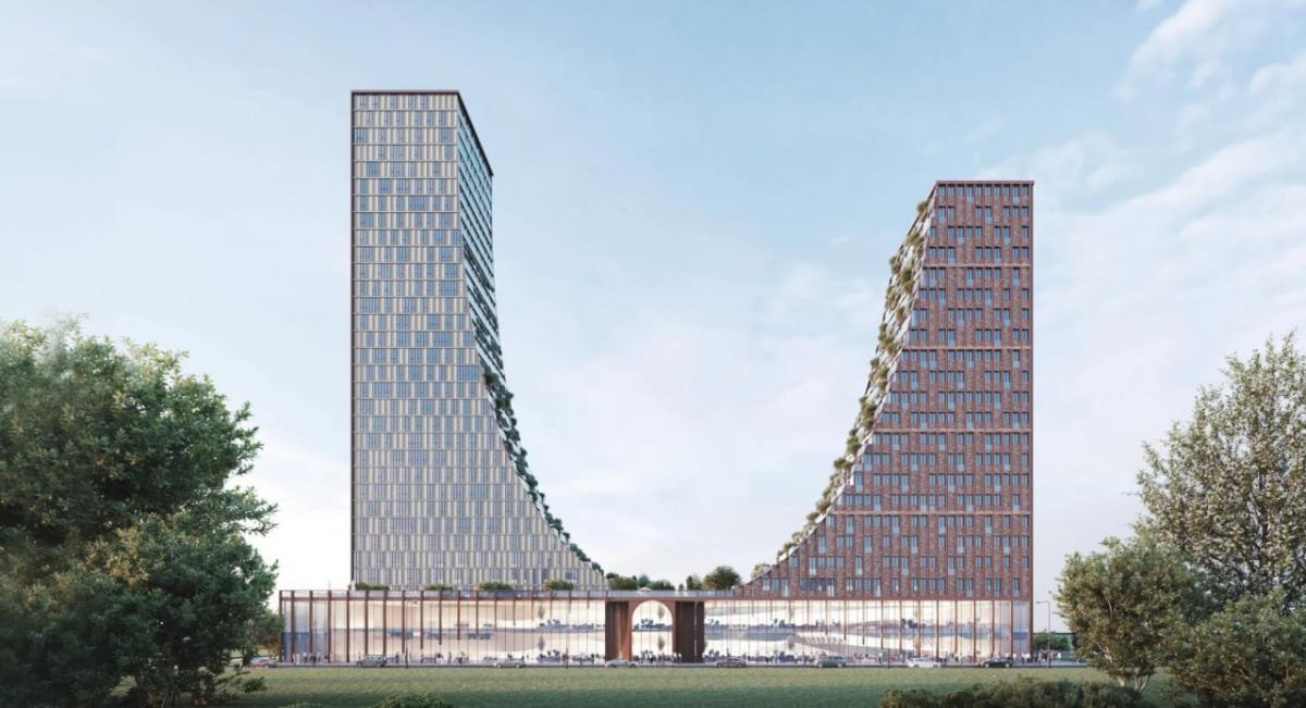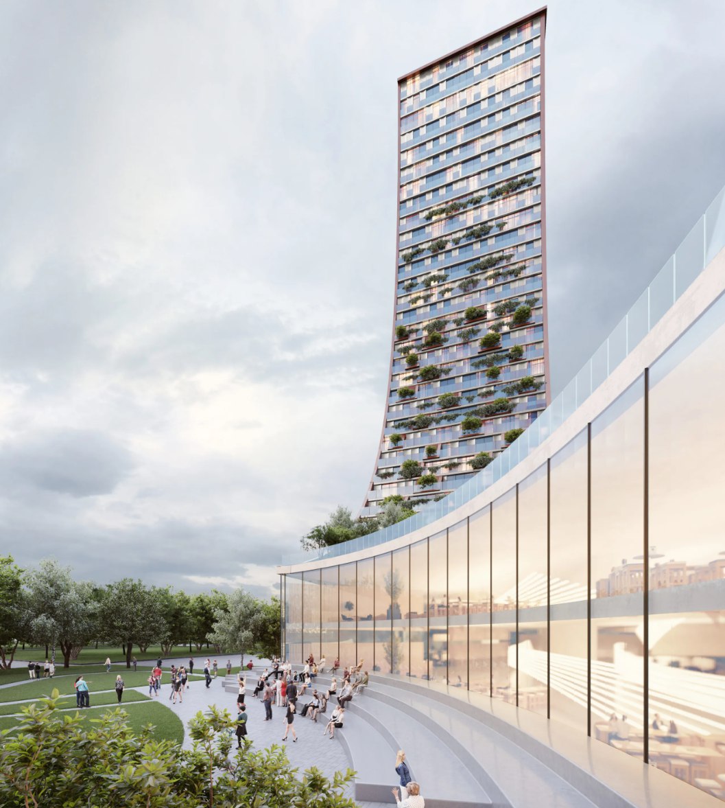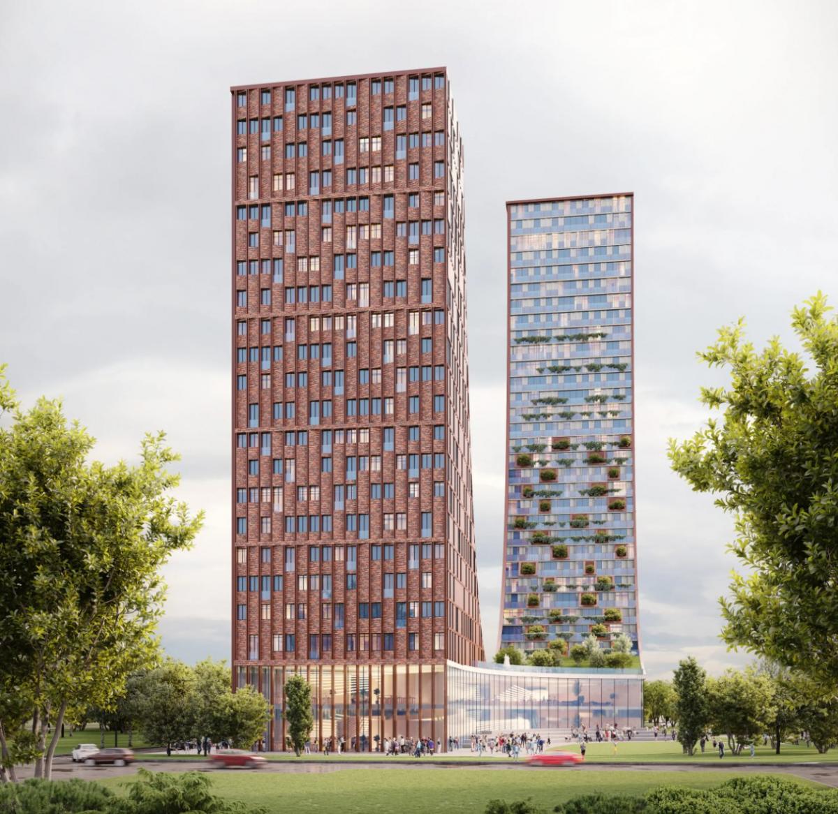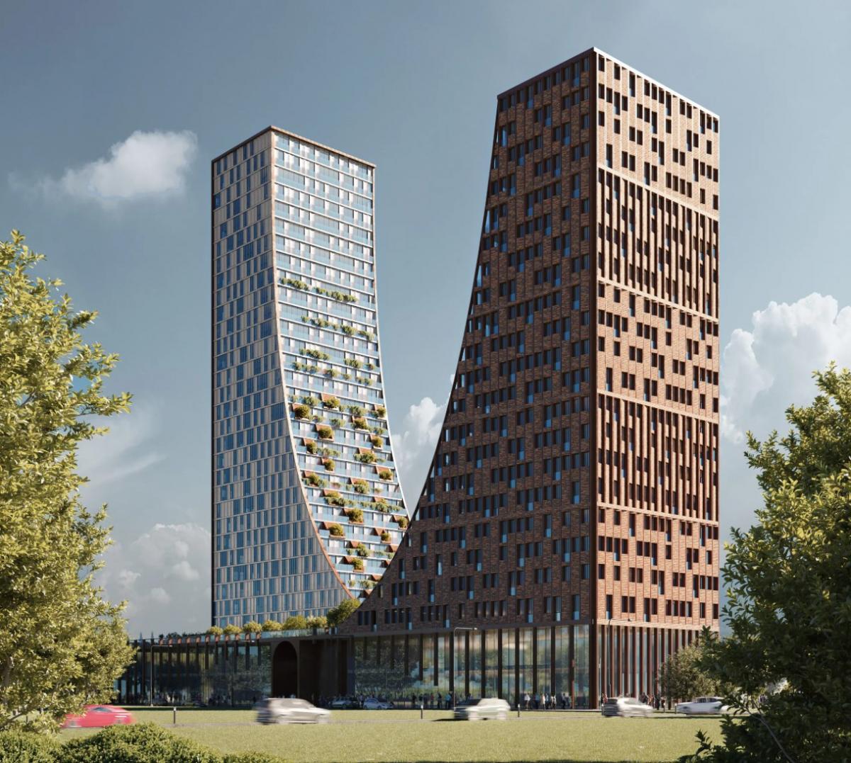 Появилась архитектурная концепция для проекта многофункционального комплекса. Авторы-бюро AQ. В планах-две башни в 30 и 20 этажей на общем 2-уровневом стилобате. Площадь объекта-7 874 квадратных метров.